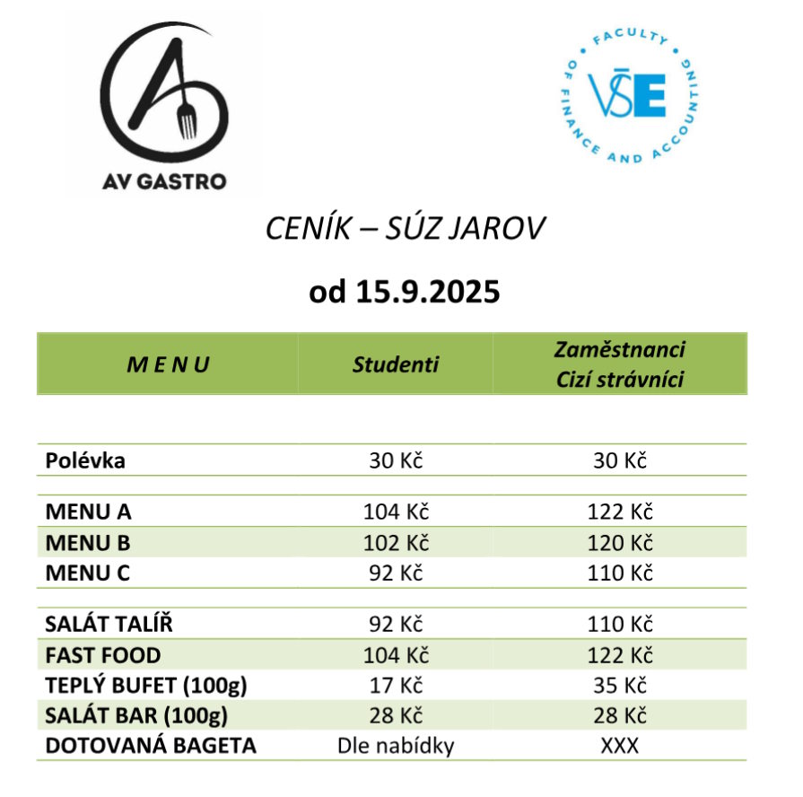 - Pro studenty i veřejnost, levné a kvalitní stravování